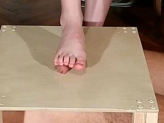 Domina stomps slave cock barefoot then footjobs it hd
