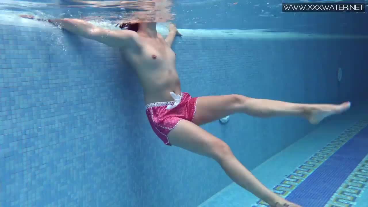 Brunette teen Kristina Andreeva swims naked in the pool underwater