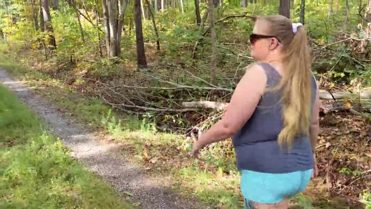 Yo, my naughty girlfriend sucked and gave her tight pussy on the trail. What a wild adventure!