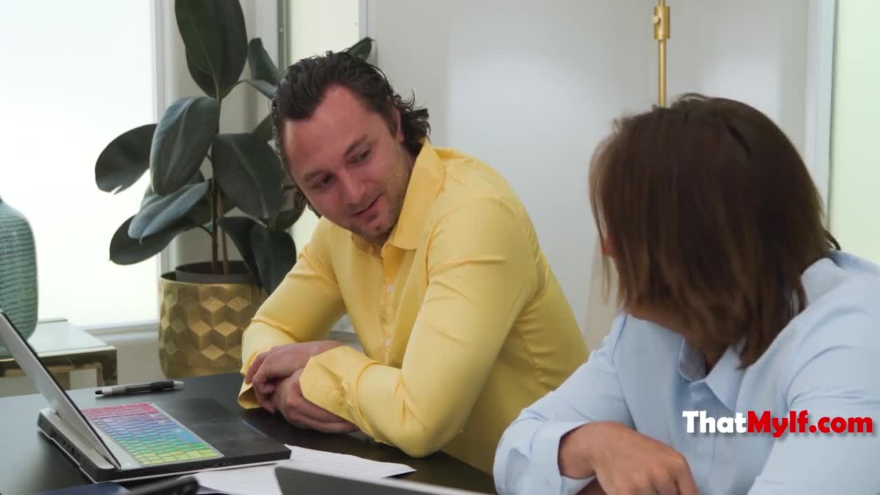 ऑफिस में अपनी ब्लॉन्ड मिल्फ बॉस के विशाल बूब्स को देखकर खुद को रोक नहीं पाता