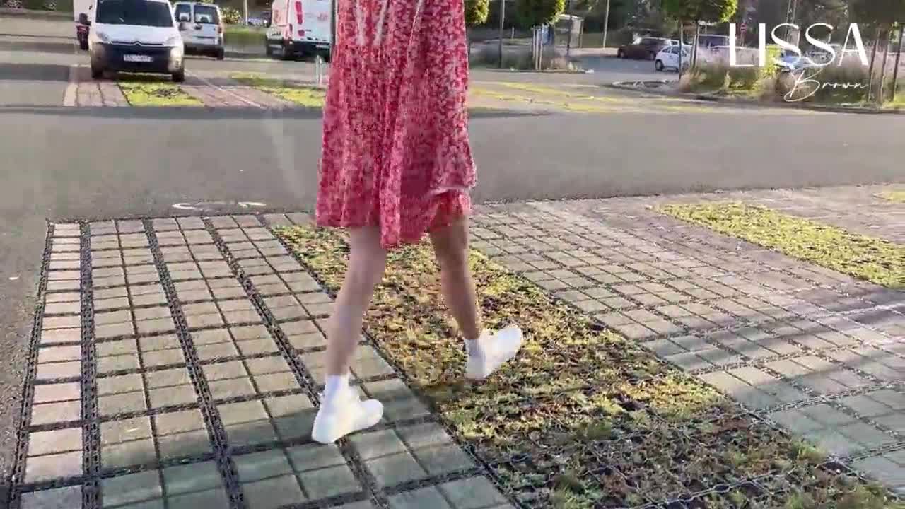 Hey, check out my mother-in-law’s pantyhose and pissing pussy in leather skirt outdoors