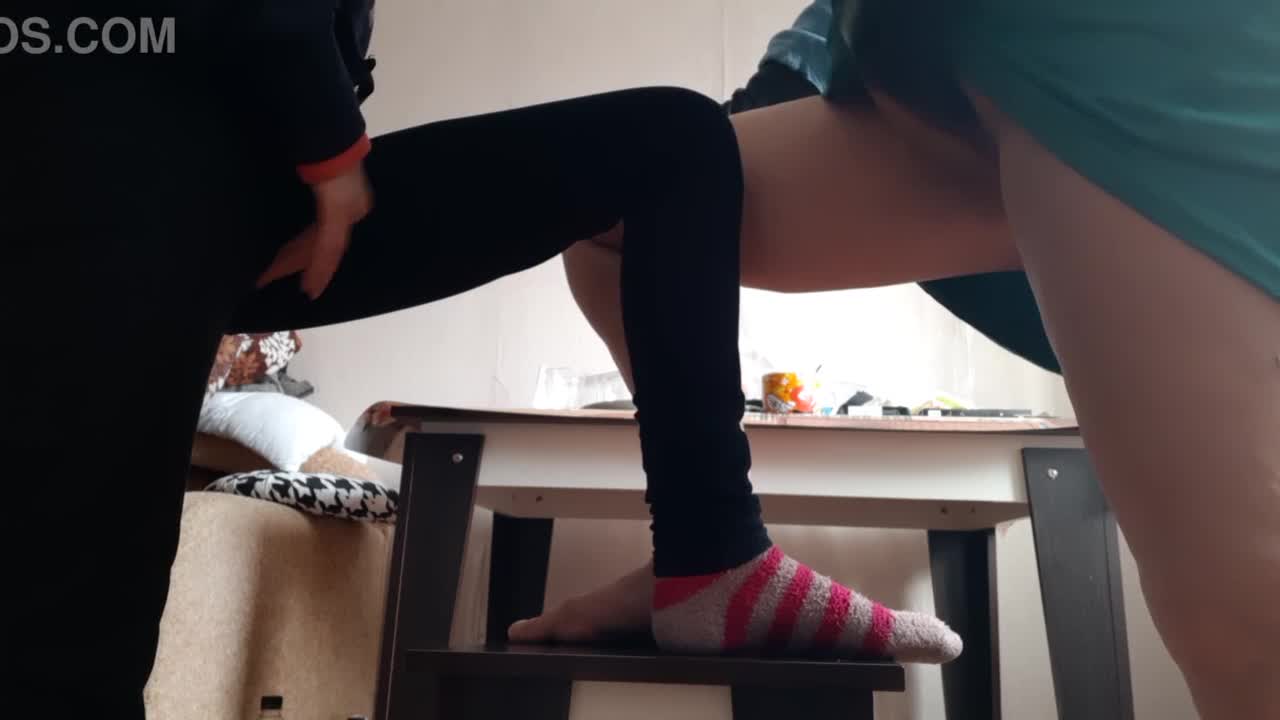 Stepsister caught with dildo, stepbrother demands real shaking orgasm together on bed