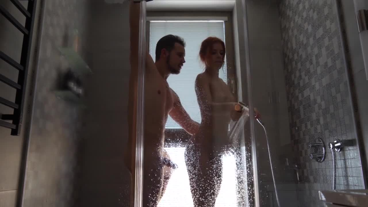 रोमांटिक कपल शावर में एक साथ गरम हो गया।