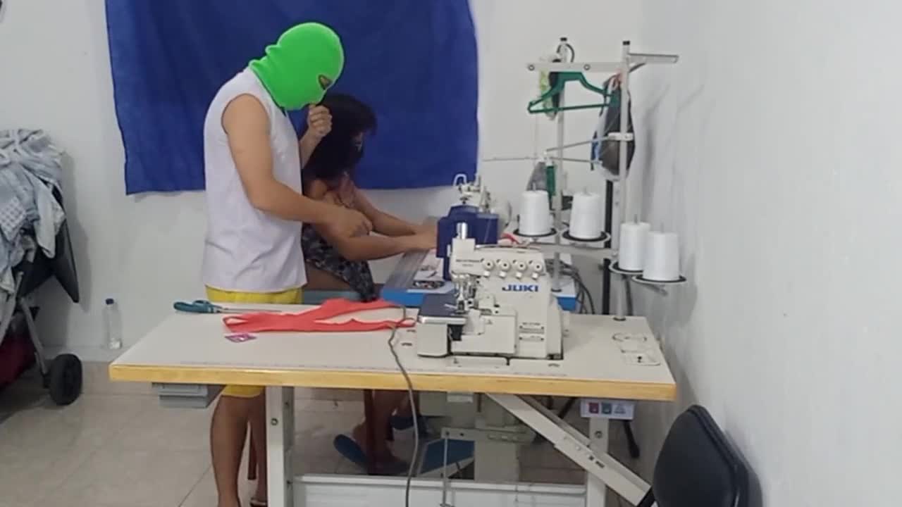 हाउसवाइफ टेक्नीशियन से नई लिंगरी का ऑपिनियन लेती है