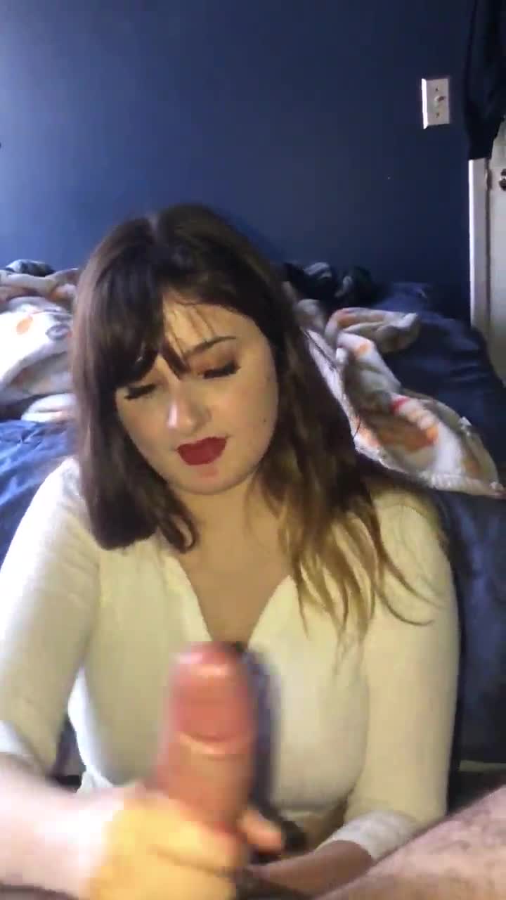 Chubby slave milks cock and swallows cum