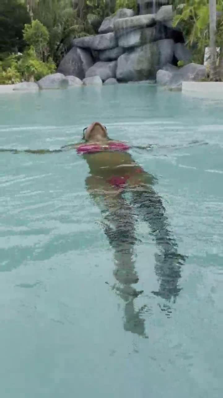 गोरी मिल्फ ने पूलसाइड मस्ती के लिए बूब्स पर तेल लगाया