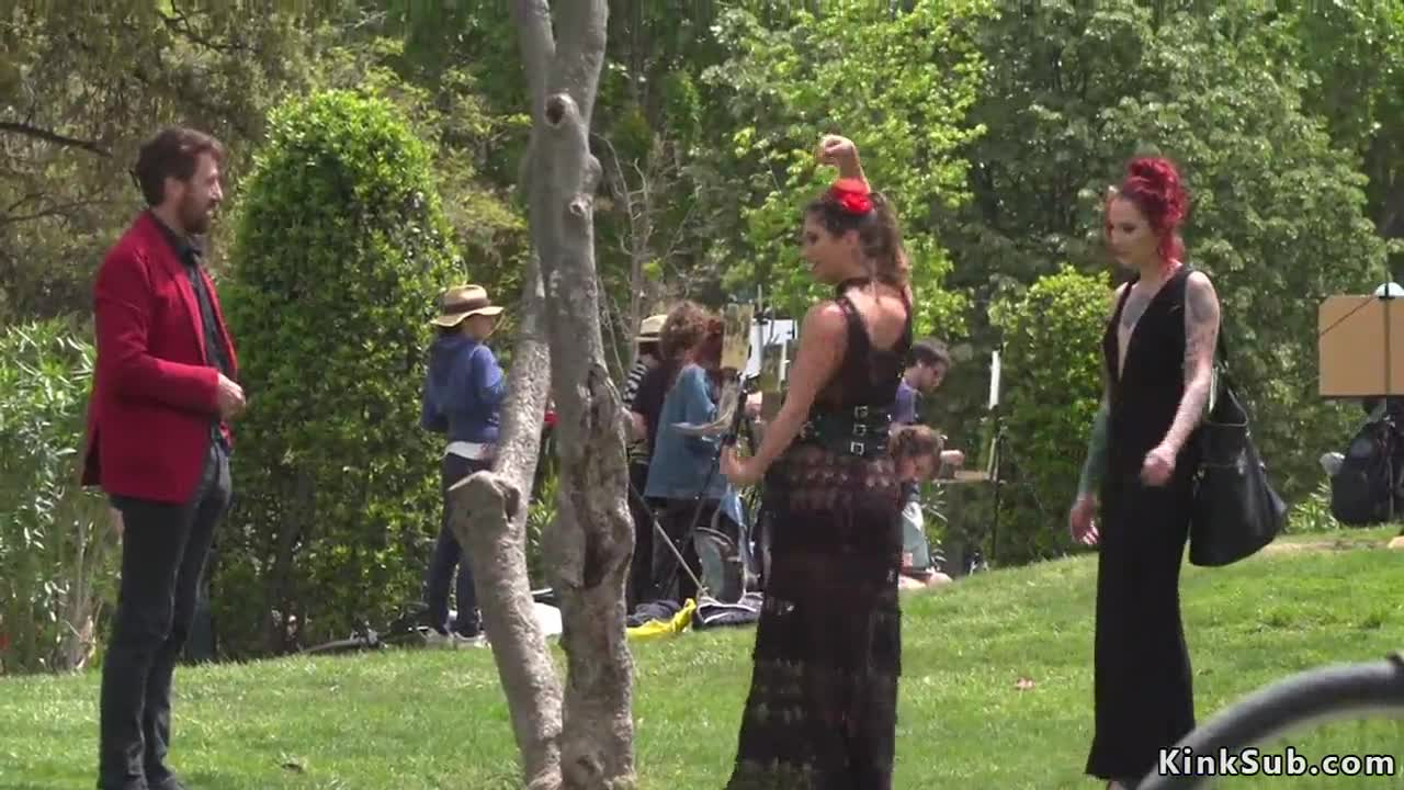 हेय, ये हॉट अस स्लेव पब्लिक में बाउंड और व्हिप्ड क्यों है?