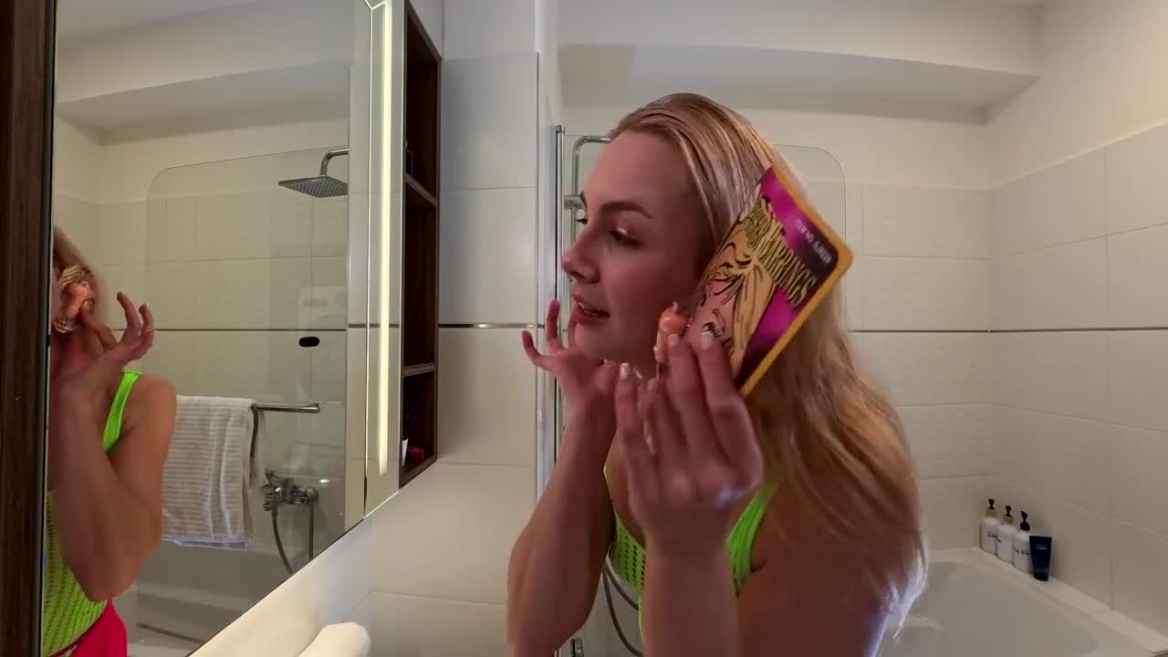 Filming my ex as she tries on multiple outfits like stockings and panties casually.
