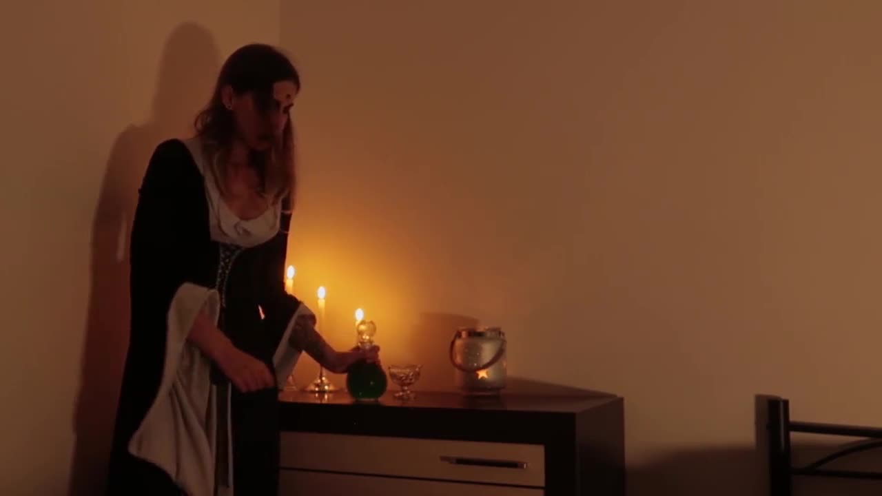 हरमनस्ट्रा नन के कपड़े में हेलोवीन रात को कुम से भीग जाती है