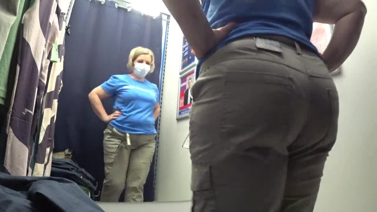 Hidden camera spies on chubby milf trying shorts in fitting room fetish close-ups?
