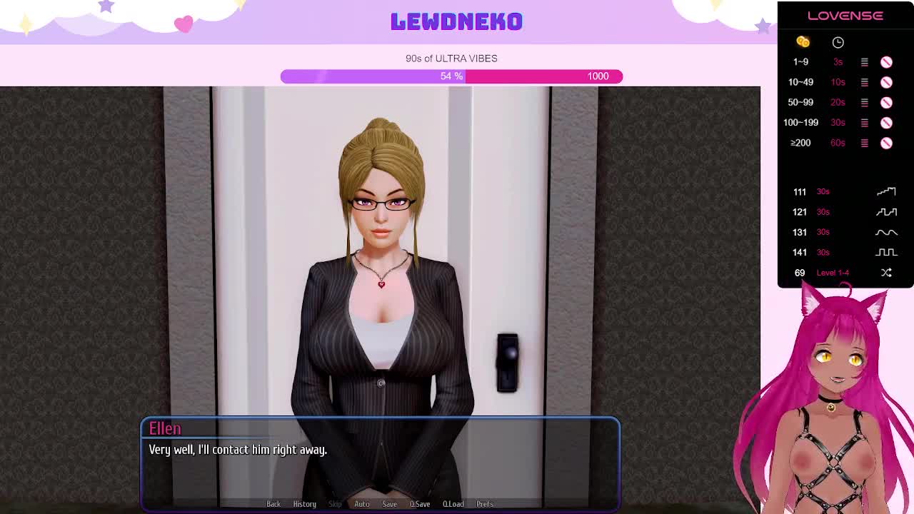 Vtuber Lewdneko moans naked in Harem Hotel gameplay.