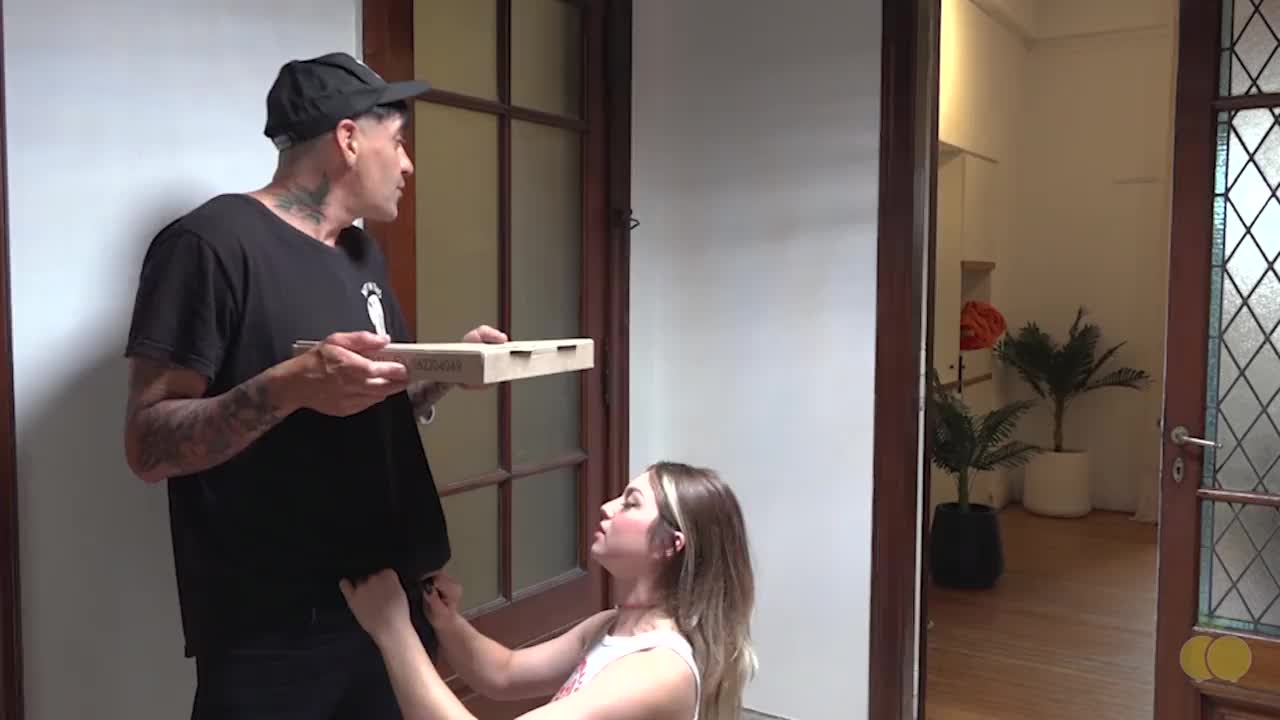 पिज्जा के लिए पिज्जा गाय को फ्री में चोदा, पिज्जा लव के लिए!