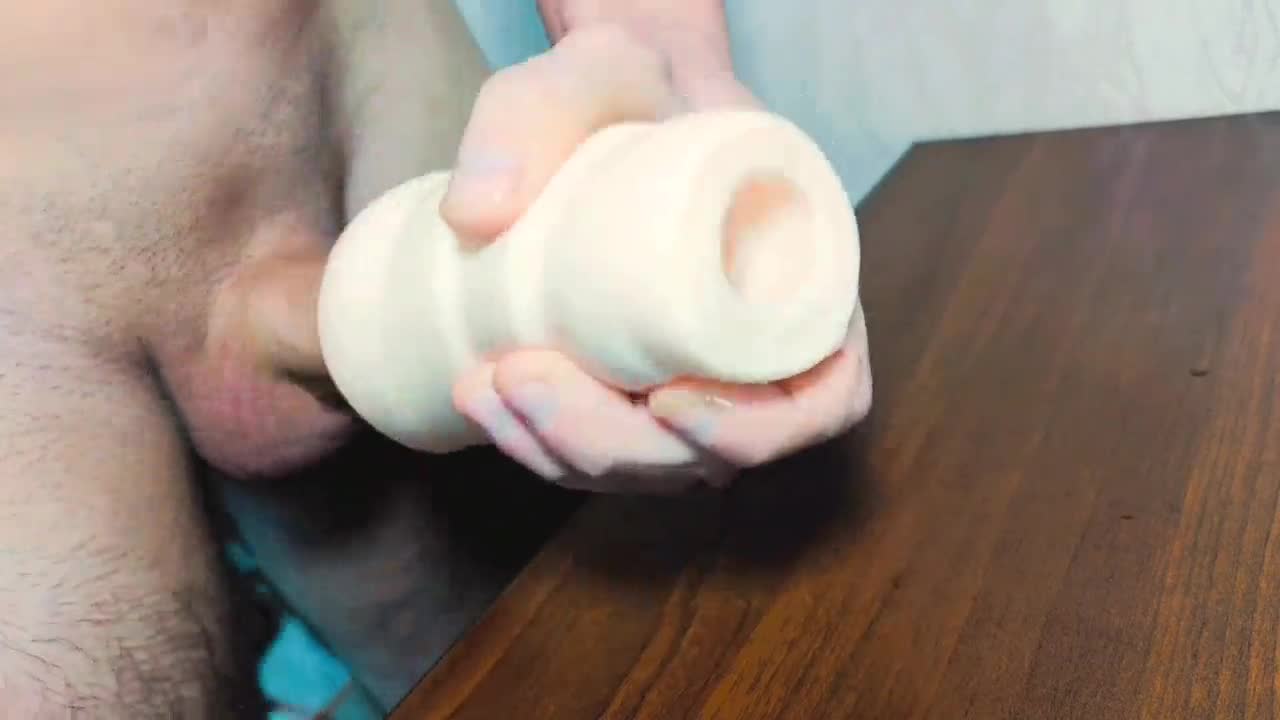 Horny guy fucks his fleshlight with a big dick, moans loud, and cums inside 😩