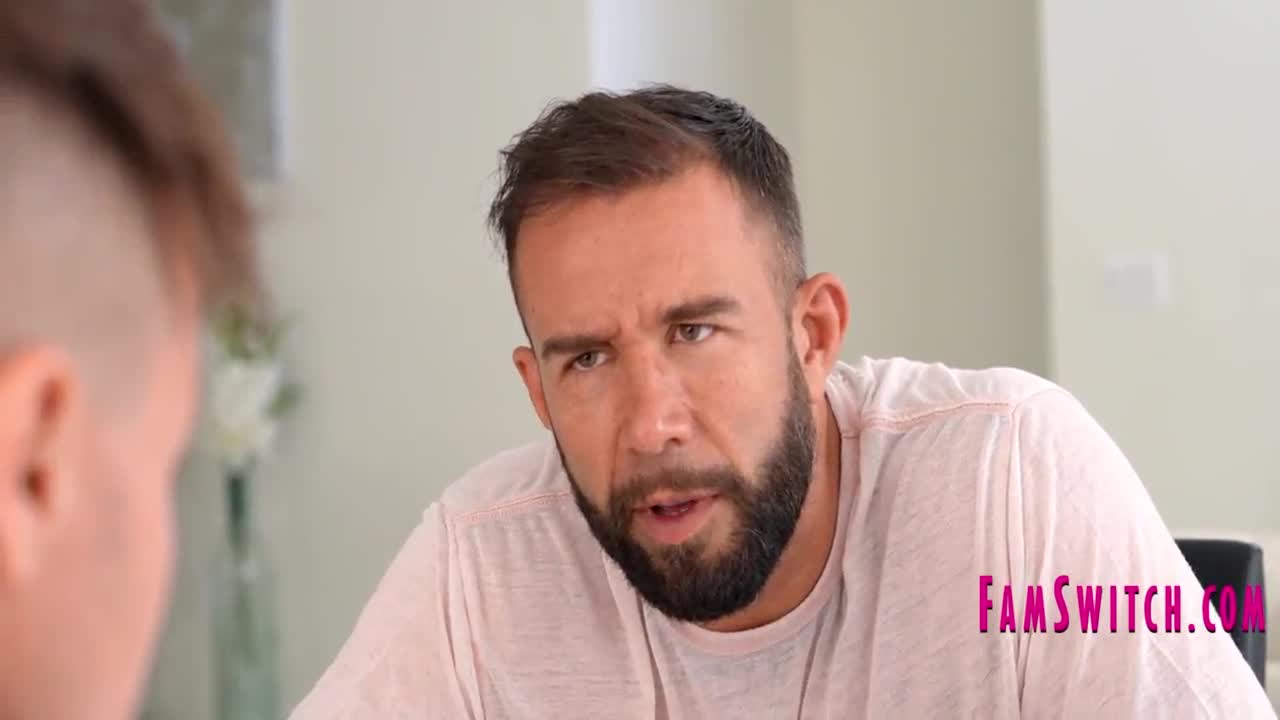 How does cheating blonde teen learn sex ways from stepdad in hardcore blowjob and doggystyle?