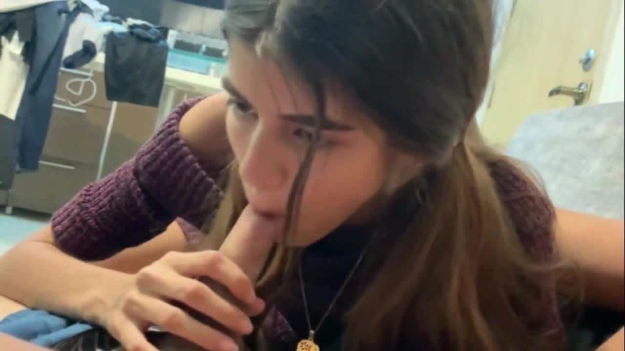 खूबसूरत 18+ टीन सौतेले पापा का बड़ा लंड चूसती है, देखना कितना हॉट है! 😈