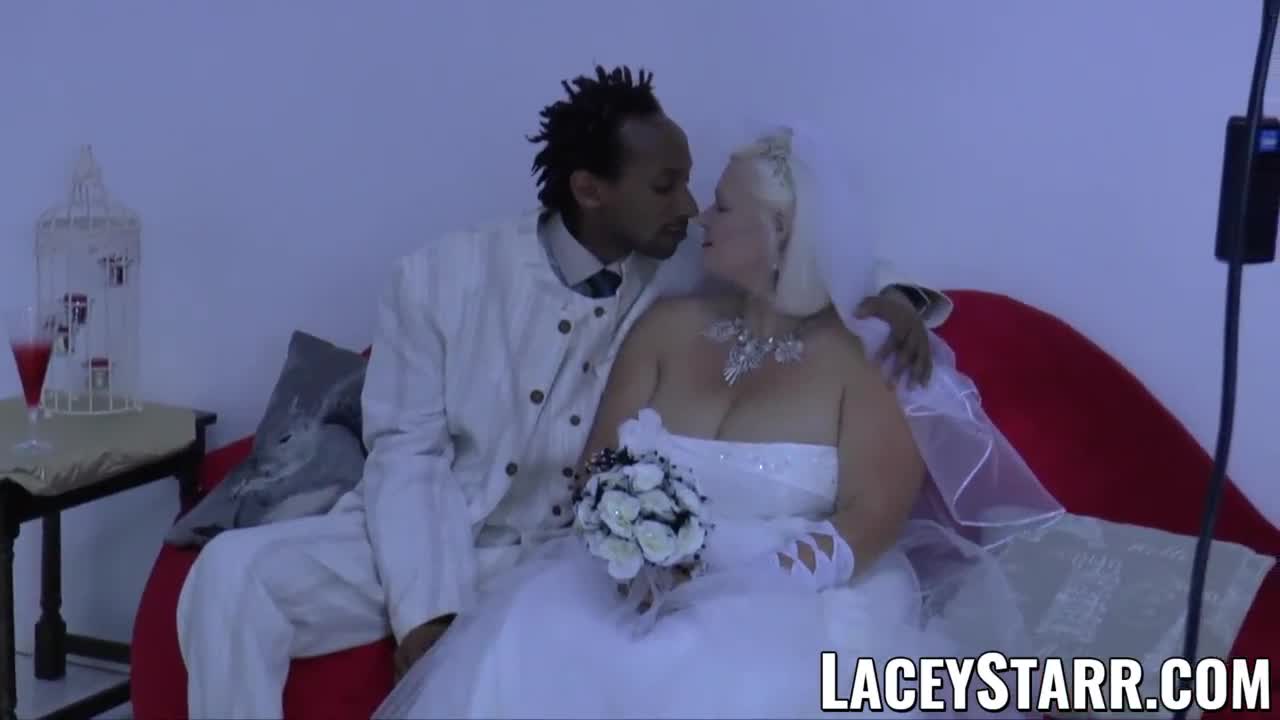Luscious British granny enjoys a ride with a big black cock in steamy action.