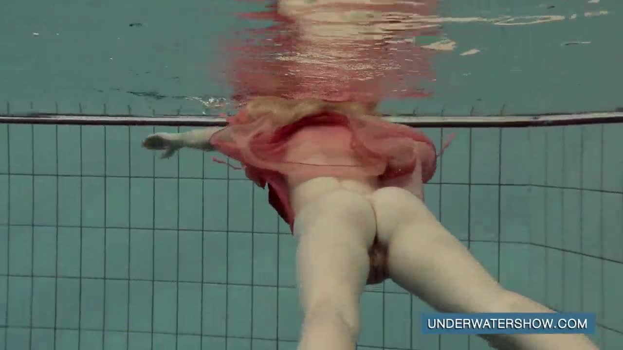 Tiny ass nastya in a dress splashes around the pool underwater with her natural tits exposed